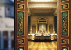 Египетский павильон предназначался для нескольких целей – он мог служить и парадной столовой, и концертным залом. Выставка органично вписанная в подлинные интерьеры, позволит продемонстрировать все грани традиционной праздничной культуры в усадьбе: от парадного застолья до фейерверков. Вводная часть выставки в Восточном флигеле расскажет об истории строительства летней увеселительной резиденции Шереметевых. Основная часть в Египетском павильоне реконструирует традиционный праздничный прием в Останкине. На выставке представлено более 370 музейных предметов.