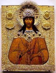 Икона находится в храме Василия Блаженного (Покровском соборе) и передана в реставрационные мастерские ВХНРЦ им. Грабаря. Специалисты в настоящее время проводят предреставрационное исследование - отбор проб, укрепление красочного слоя иконы, микробиологический анализ на наличие плесневого поражения и др. работы. Этот образ отличается значительными размерами (215×140 см) и выразительностью письма. В центре ее изображён величественный благословляющий Спаситель с раскрытым Евангелием в левой руке; на переднем плане – коленопреклоненные св. преподобные Сергий Радонежский и Варлаам Хутынский.