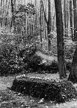 | ЯСНАЯ ПОЛЯНА: КУЛИСЫ И ДРАМЫ От входных башенок в усадьбу по дамбе Большого пруда посетители по прямой, обсаженной березами аллее, сохранившей старое название - "Прешпект", -- поднимаются прямо к дому Толстого. По правую руку остается каскад прудов, теплицы и пейзажный англ. парк. По левую - яблоневые сады, дорожка, ведущая к зародышу усадьбы - Дому Волконского - и дальше, мимо старой риги и житни, в лес - к центру всего мемориального пространства - могиле Толстого на краю оврага в Старом Заказе.