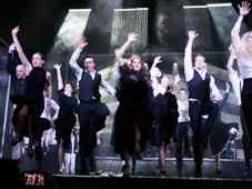 Проникновенно Окуджаву пел С.Степанченко с ленкомовскими красотками, живописно расположившимися у ног большого (и в прямом смысле слова) артиста («Моцарт на старенькой скрипке играет»), — не из спектакля совсем, но сделанный как готовый номер. И он же, но уже в паре с И.Агаповым так жахнули «Уно Моменто» из фильма «Формула любви» — начали как будто за столиками в ресторане (официантки, и все такое), а закончили в зале, когда зал пел вместе с ними. До слез, как она это умеет, довела всех Олеся Железняк: в образе вдовы из «Доходного места», но под музыку Гладкова из спектакля «Проснись и пой» она металась в балетном экстазе - не тяжелая в розовых юбках особа, а просто звезда балета. Она не могла остановиться в вариациях, все фуэте крутила — еле со сцены увели, а зал, валявшийся от смеха, уже внимал А.Шагину, читавшему стихотворение «Я не знал никогда отца» собственного сочинения, и отчаянно молодому Евтушенко в исполнении М.Аверина. А. Якунина с монологом от лица И.Чуриковой. В.Раков в дуэте с Е.Степановой с куплетами смерти из «Тиля», обещавшие всем, что «будет заваруха».