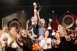 После трогательной речи режиссер объявил то, что от него ждали больше всего, - о своих планах на театр. Два наименования: «Репетиция оркестра» Феллини - этот спектакль будет посвящен М.Захарову - и «Золотой теленок». Завершил свою речь Владимир Николаевич легендарной мюнхгаузеновской цитатой: «Улыбайтесь, господа, улыбайтесь», дабы снизить градус серьезности происходящего.
