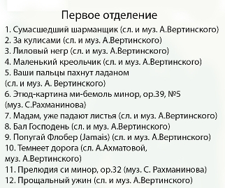 Из ВК: Наталья Гончарова: «Эти песни не сможем забыть никогда, никогда!» Эта фраза прозвучала сегодня не только в песне «Сумасшедший шарманщик», но и в монологе Олега Евгеньевича. Не сможем и не захотим забыть ни этих песен, ни судьбы Александра Николаевича, как бы не «мчался бешеный шар» наш! Спасибо, Олег Евгеньевич, за то, что дарите бесконечность великому Артисту Вертинскому! Спасибо, Олегу Вайнштейну!