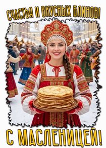 Пусть с печеными блинами К вам достаток в дом войдет, Чтоб всего добились сами, Пусть по жизни вам везет.