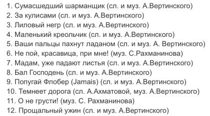 20. «Танго «Магнолия» Монолог О.П. 21. «Padam, padam...» - муз. Н.Гланцберга, сл. А.Конте